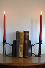 A matching pair of antique cast iron flat irons (by: T.SHELDON&Co W-HAMPTON) are the base for this upcycling project;