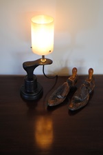 This lamp upcycling project is based on a vintage/antique Blakeys cast iron shoe-last fitted on a beach wood base,
